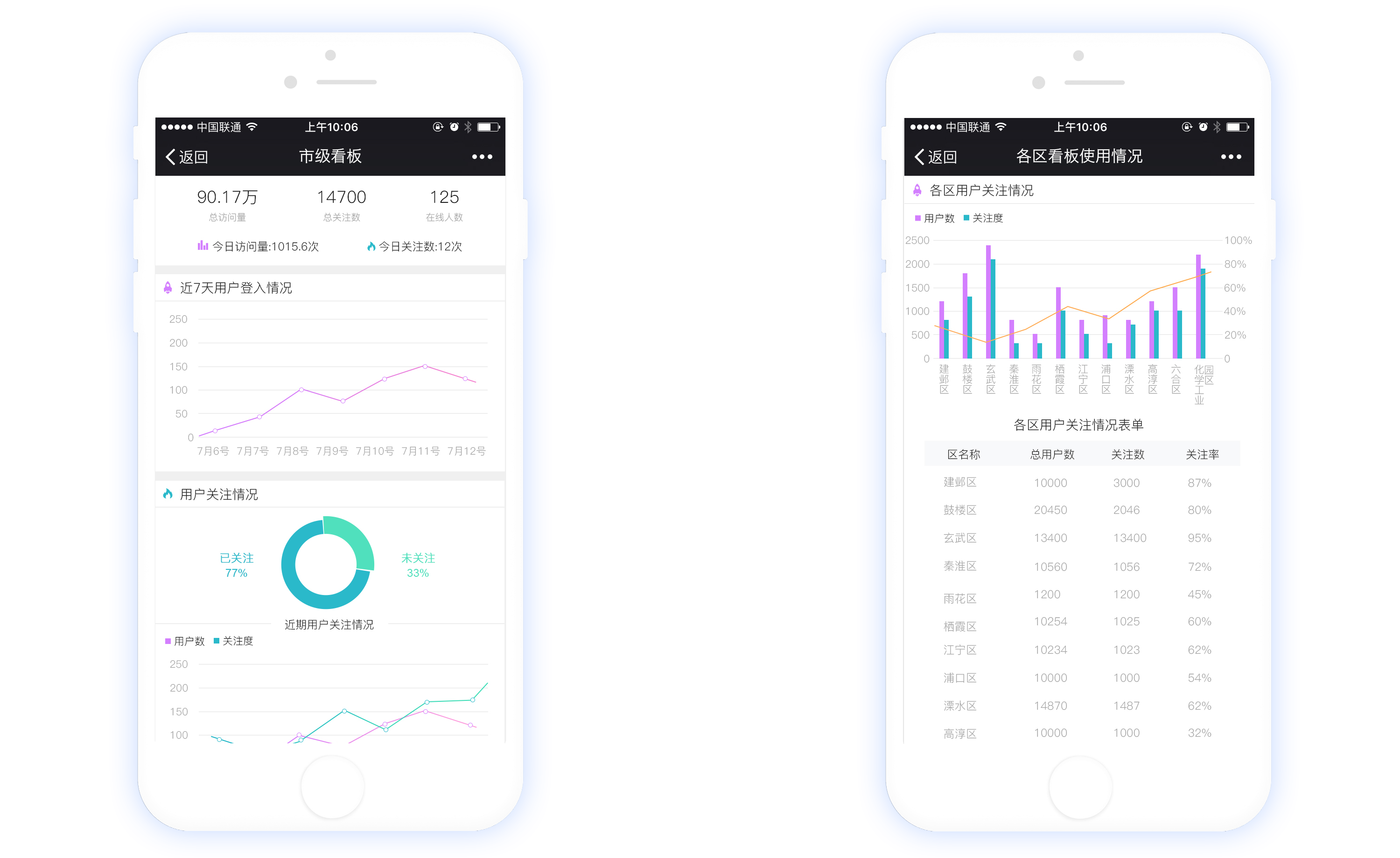 展示了學校(xiào)日(rì)常工(gōng)作(zuò)中的(de)所有(yǒu)統計(jì)數據,方便學校(xiào)領導及時(shí)掌握學校(xiào)情況,了解數據動态。彙總內(nèi)容包括了教師(shī)和(hé)學生(shēng)的(de)出勤率、請假情況、報修狀态、模塊使用頻(pín)率、資源預約、用戶關注等。