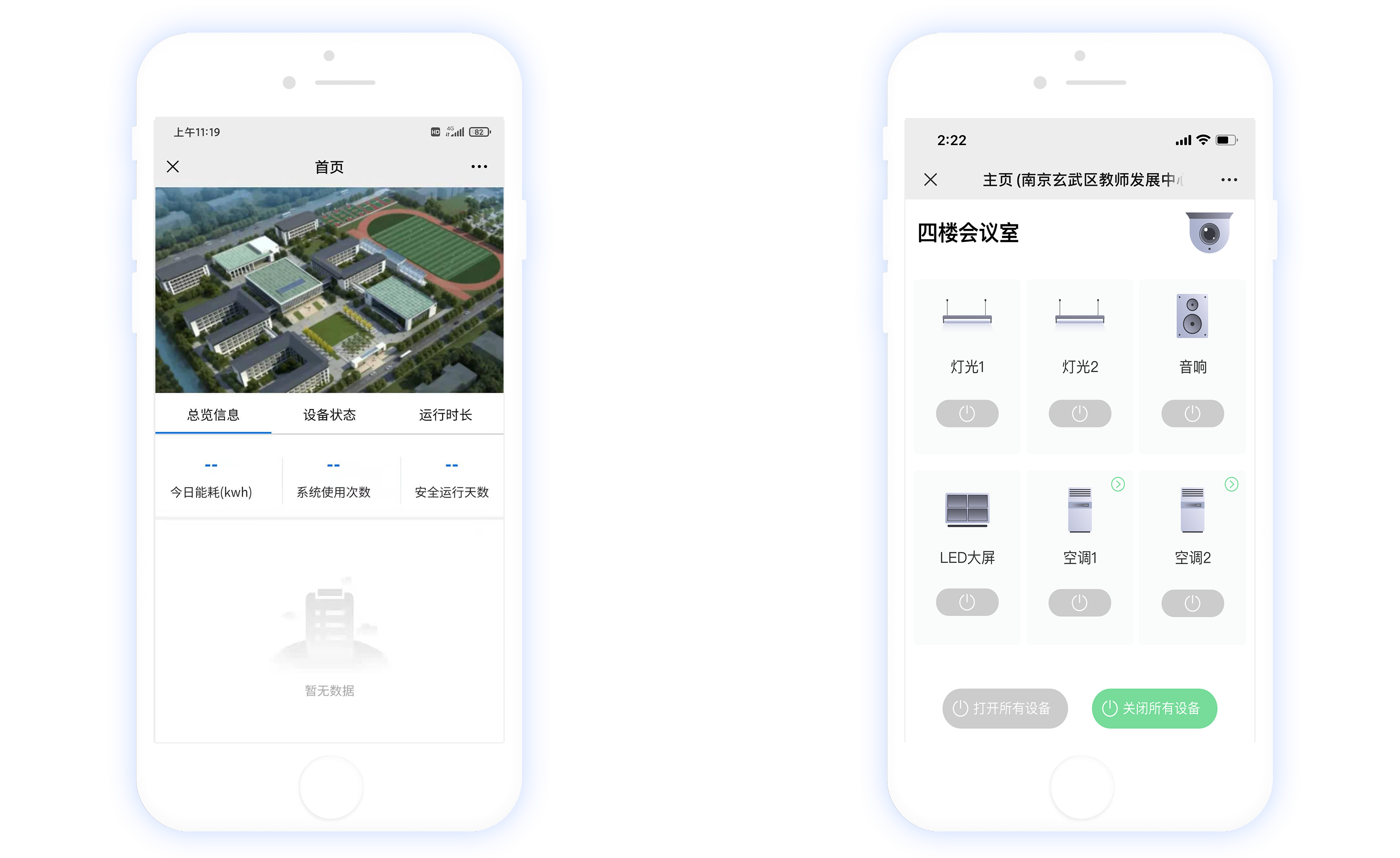滿足學校(xiào)日(rì)常行為(wèi)的(de)智能化(huà)設置,主要包括:電(diàn)控(空調,燈)、水(shuǐ)控、空氣質量檢測。