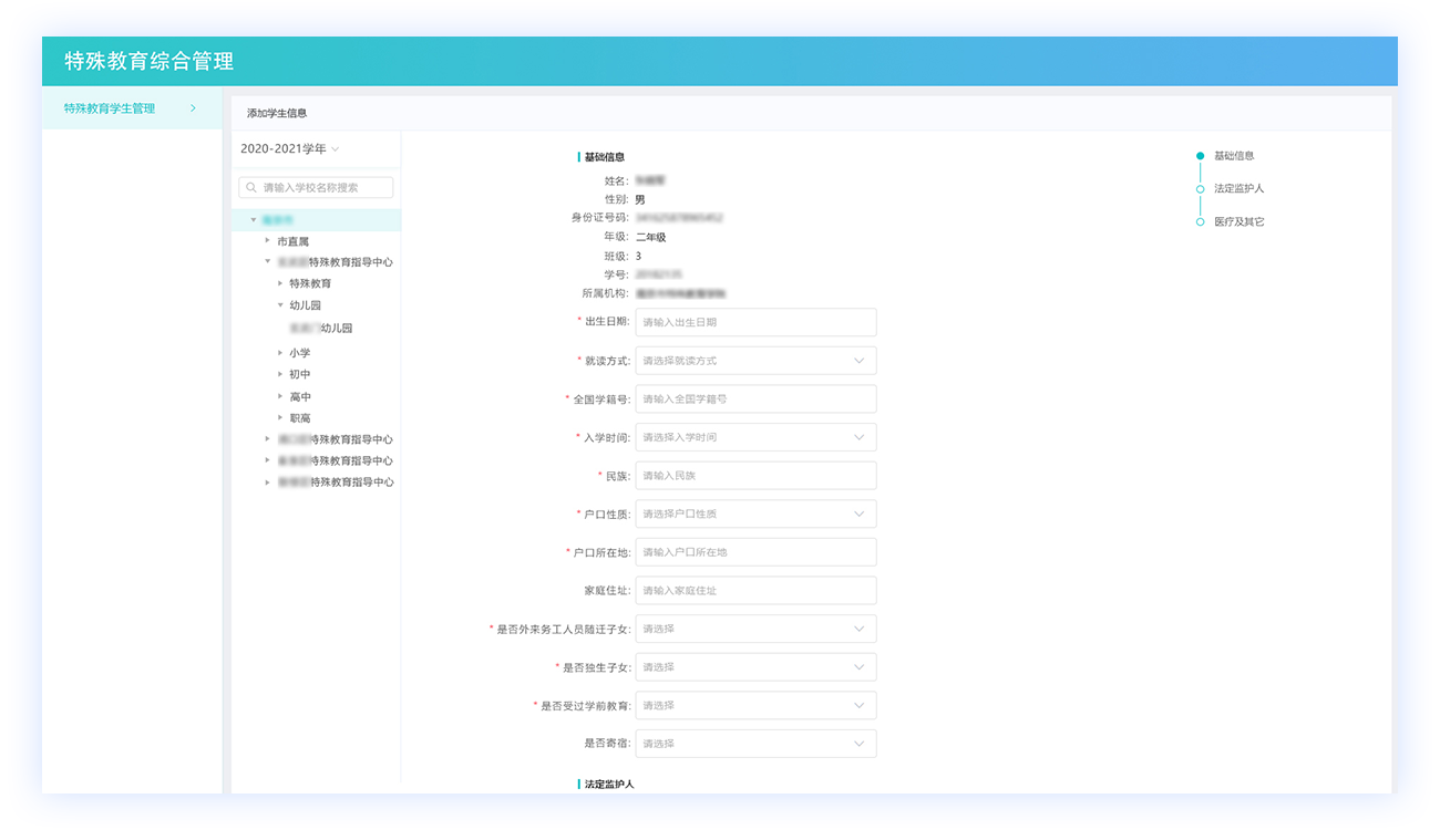 提供特殊學生(shēng)的(de)在線申請,管理(lǐ)機(jī)構在線審核,資源教師(shī)的(de)在線申請審核,審核通(tōng)過後一鍵入檔。